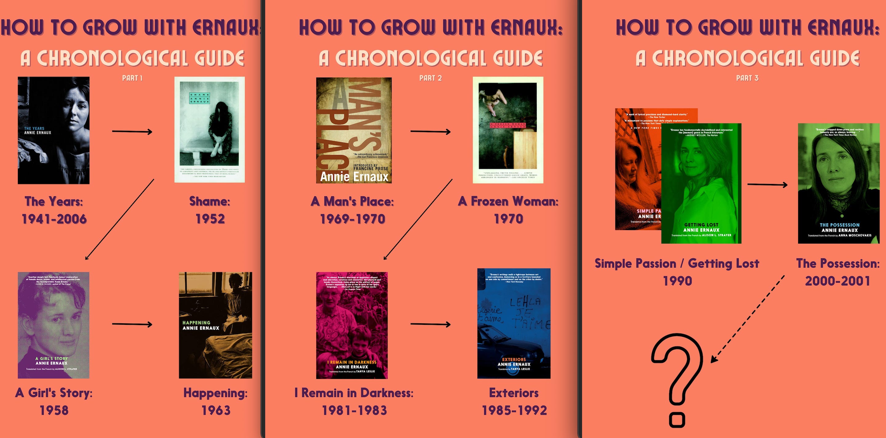 All of this to say: I’m curious about the experience of microdosing a life. In this blog I’ll be posting my thoughts and reflections as I read through her work. Ernaux’s US publisher, Seven Stories Press, has shared a helpful guide that places her nonfiction in chronological order.